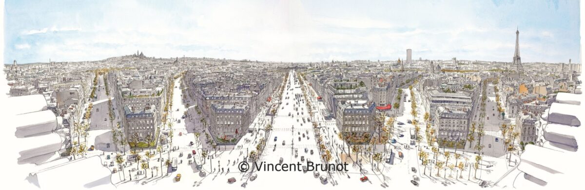 Ateliers de dessin collectifs, formations à la perspective et au croquis urbain.