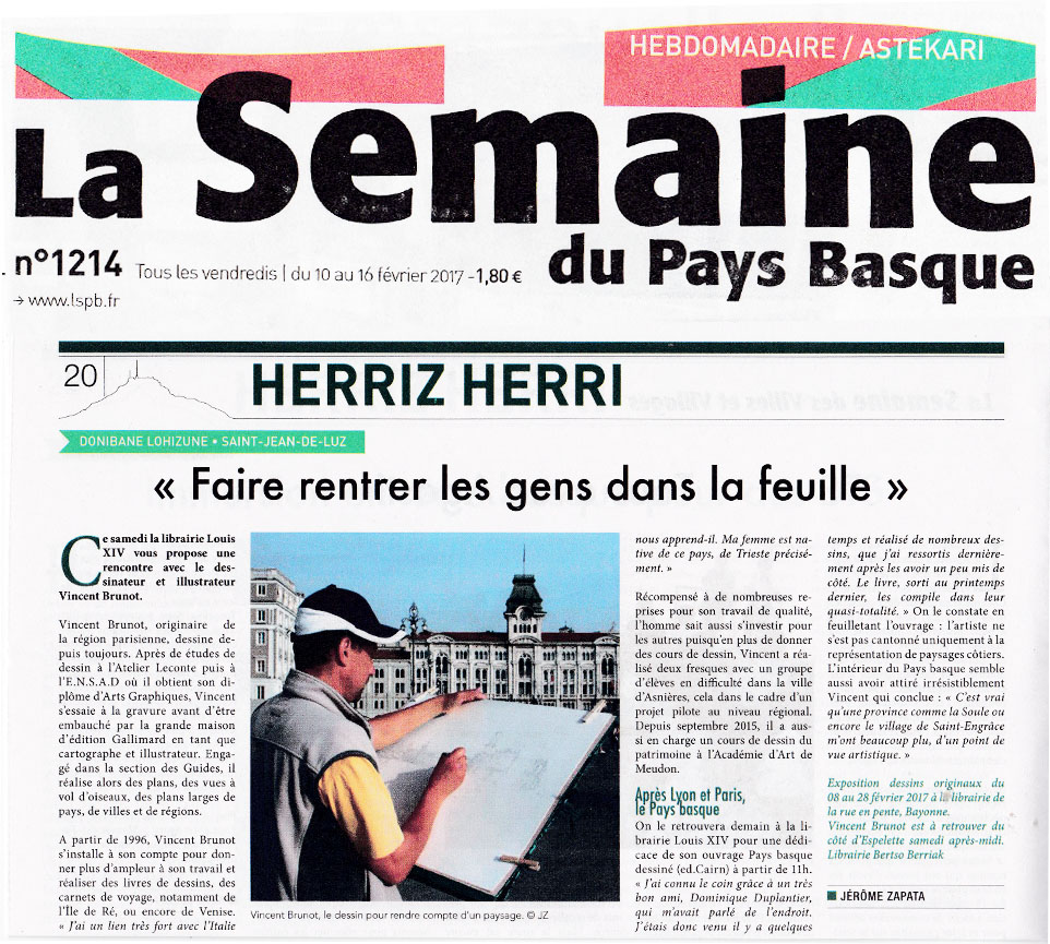 Article dans La Semaine du Pays Basque (baskulture.com) consacré à Vincent Brunot, février 2017.