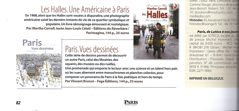 Mention du travail de Vincent Brunot dans la publication « Paris, de Lutèce à nos jours », décembre 2014 / janvier 2015.
