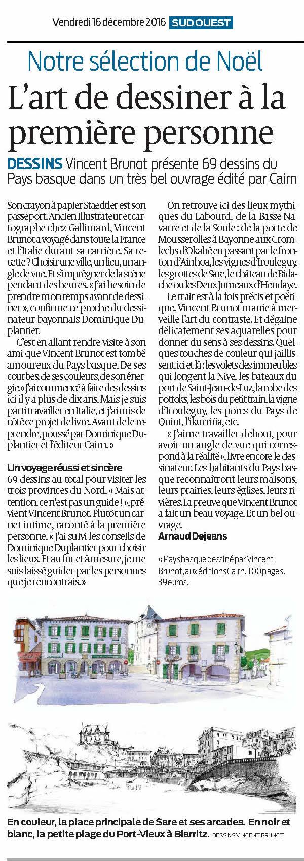 Article consacré à Vincent Brunot et son livre sur le Pays Basque dans Le Sud Ouest Pays Basque, décembre 2016.