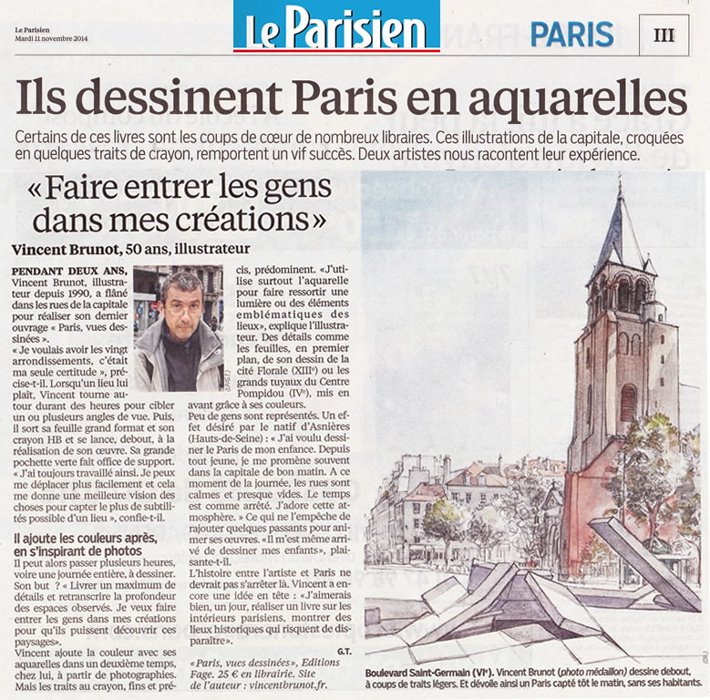 Article du Parisien consacré à Vincent Brunot et son livre Paris Vues Dessinées, le 11 novembre 2014.