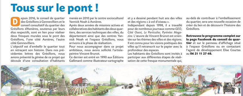 Article du Parisien du 10 juin 2018 consacré aux fresques réalisées par Vincent Brunot sur le pont des Grésillons.