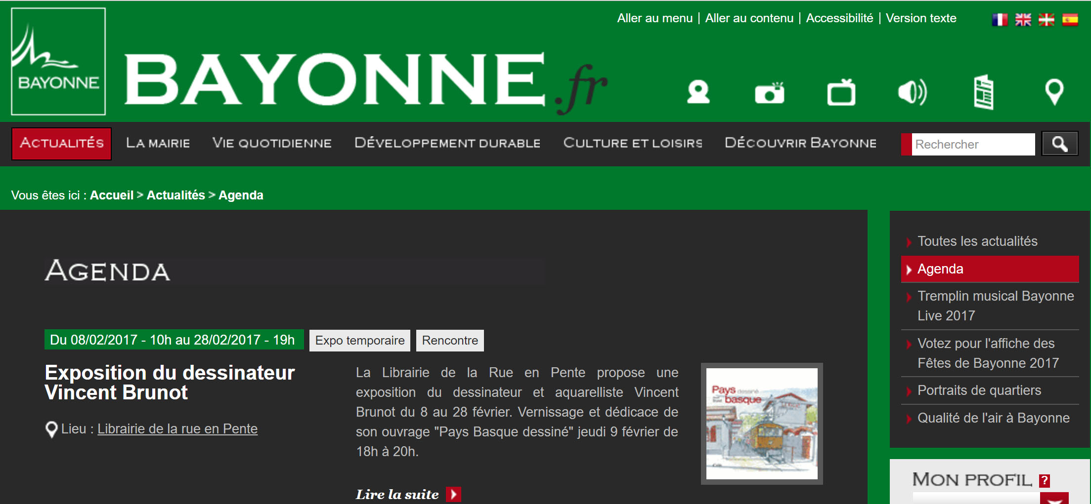 Article sur le site de la Ville de Bayonne consacré à l’exposition de Vincent Brunot, février 2017.